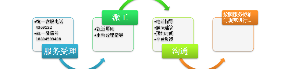 7、統(tǒng)一派工平臺(tái)由統(tǒng)一受理電話、微信報(bào)修號(hào)碼、客服人員組成,代表公司的統(tǒng)一受理與調(diào)度。